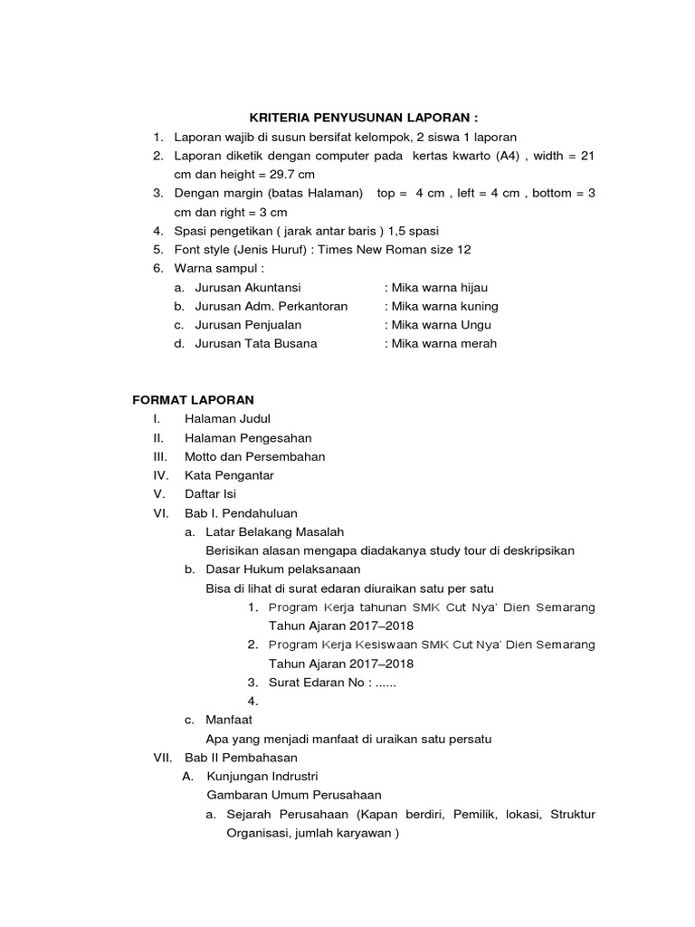 Contoh Laporan Karya Tulis Study Tour Kumpulan Contoh Laporan