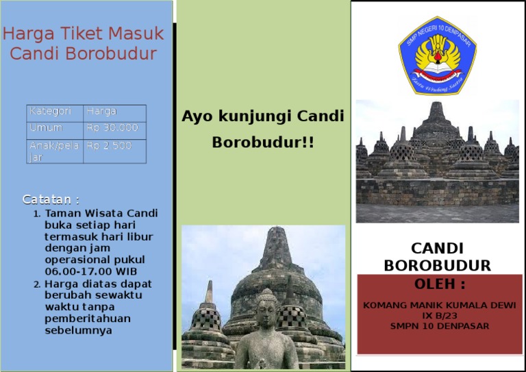Meski ada cerita dan legenda candi Borobudur yang beredar mengenai kejayaan candi ini di masa lampau. 000 Harga tiket masuk candi untuk wisatawan Asing atau Mancanegara Candi Borobudur. Rakyatnya hidup tenteran dan damai.