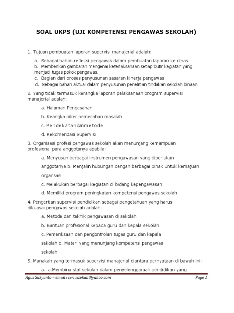 Latihan Soal Uji Kompetensi Pengawas Sekolah Pdf