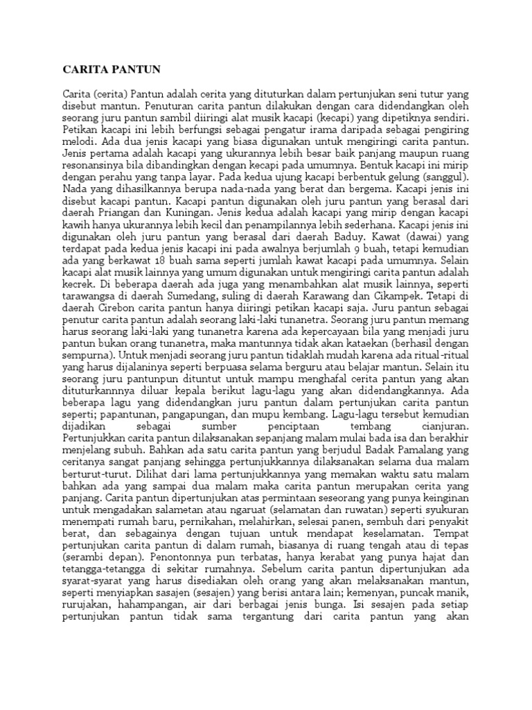 Pikeun nangtukeun iraha mimitina aya carita pantun hese ngira-ngirana lantaran sastra wangun lisan mah babari robah jeung babari leungit. Salah satunya materi tentang Materi Carita Pantun Sunda LengkapKami berusaha memberikan materi yang lengkap kepada sobat dengan melampirkan beberapa gambar yang terkait dengan materi tersebut agar mudah dimengerti. Carita pantun mangrupa manifestasi kabeungharan batin manusa Sunda loba kénéh nu teu dipikawanoh kana wangun jeung eusina dipiharep ieu panalungtikan carita pantun Mundinglaya Di Kusumah bisa jadi salah sahiji sumber élmu pikeun mikanyaho kabudayaan Sunda nu museur kana ajén-inajénna turta bisa jadi gambaran atawa babandingan pikeun.