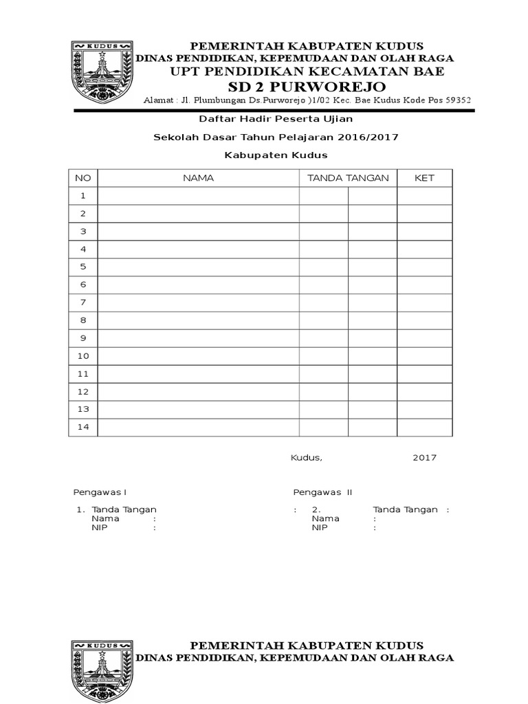 Contoh Daftar Hadir Peserta Ujian Sekolah Sd Tips Cute766